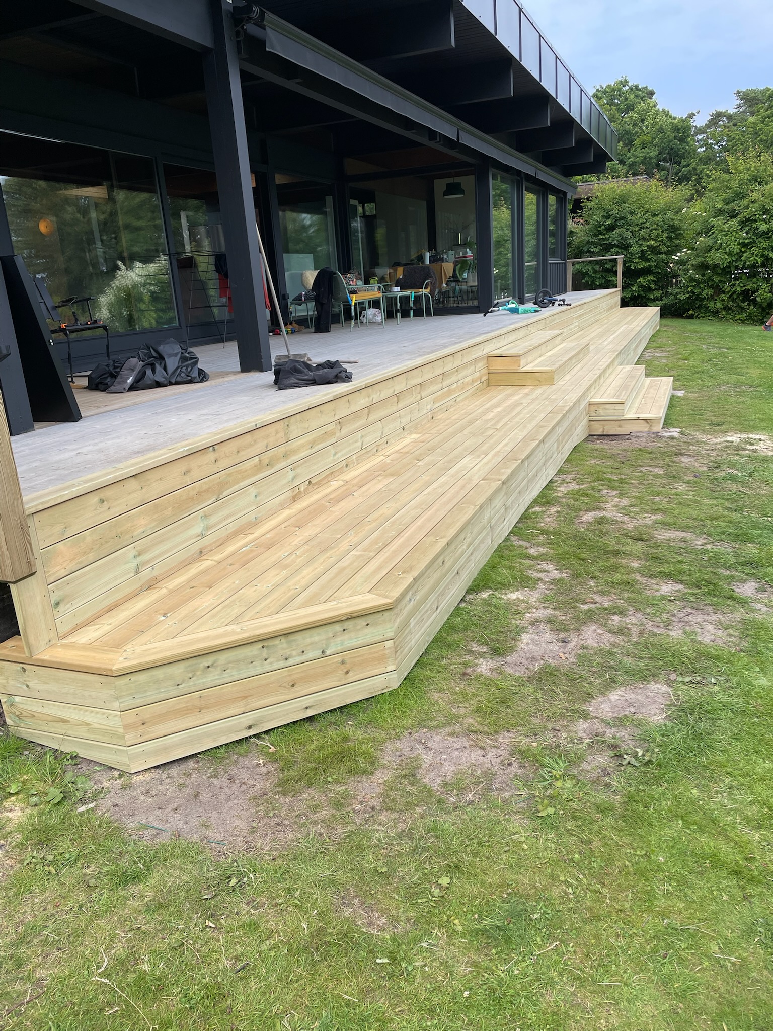 I detta projekt fick vi uppdraget att bygga om en befintlig altan som med åren blivit sliten och instabil. Kunden önskade en mer hållbar konstruktion och ett modernare uttryck som bättre passade huset och trädgården.